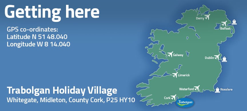 Cork transfers offers you the perfect solution if you plan to take the bus or train for your family holiday.  They can collect you from the bus or train station and take you directly to Trabolgan.  Contact them directly for details and pricing cork transfers contact.